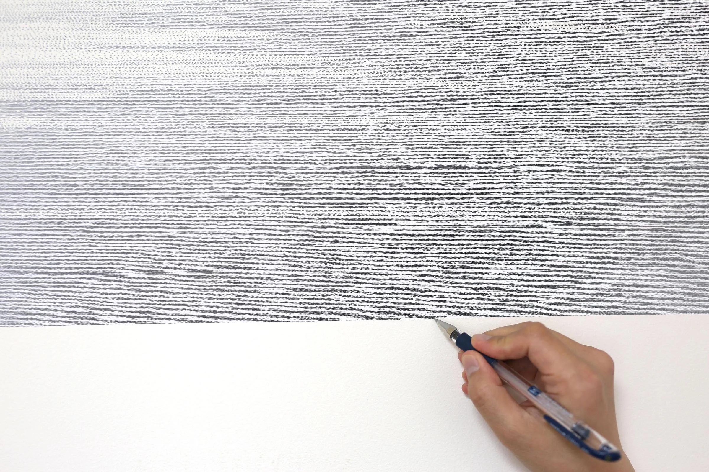 As I continued, something shifted within me. A sense of stillness, a feeling of zen emerged. It felt like I approached a state of nothingness. On the blank paper before me, light and waves seemed to form outside of my awareness. I began to understand that my process of drawing lines over and over is not just an artistic practice, but is also prayer, breath, and meditation.